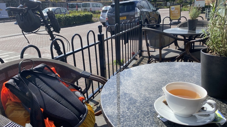 Aanbeland in de Betuwe. Nu in Kesteren een kopje thee bij het bakkertje.